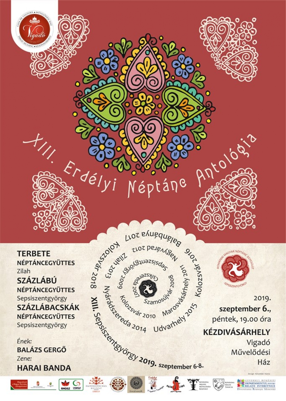 A Vigadó Művelődési Ház, a Romániai Magyar Néptánc Egyesület és a Kovászna Megyei Művelődési Központ szervezésében, szeptember 6-án, 19:00 órától, a XIII. ERDÉLYI NÉPTÁNC ANTOLÓGIÁT mutatja be a Vigadó Művelődési Ház nagytermében.