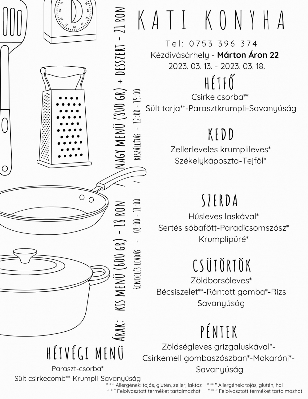 A Kati Konyha heti menü ajánlata 2023 március 13 és 17 között