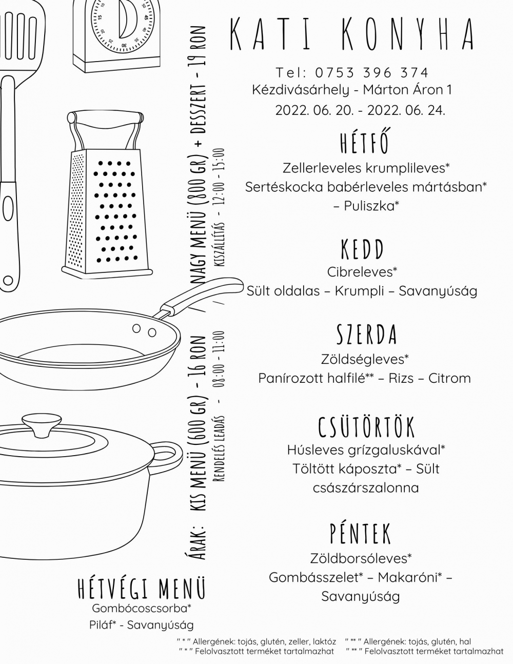 A Kati Konyha napi menü ajánlata 2022 június 20 és 24 között