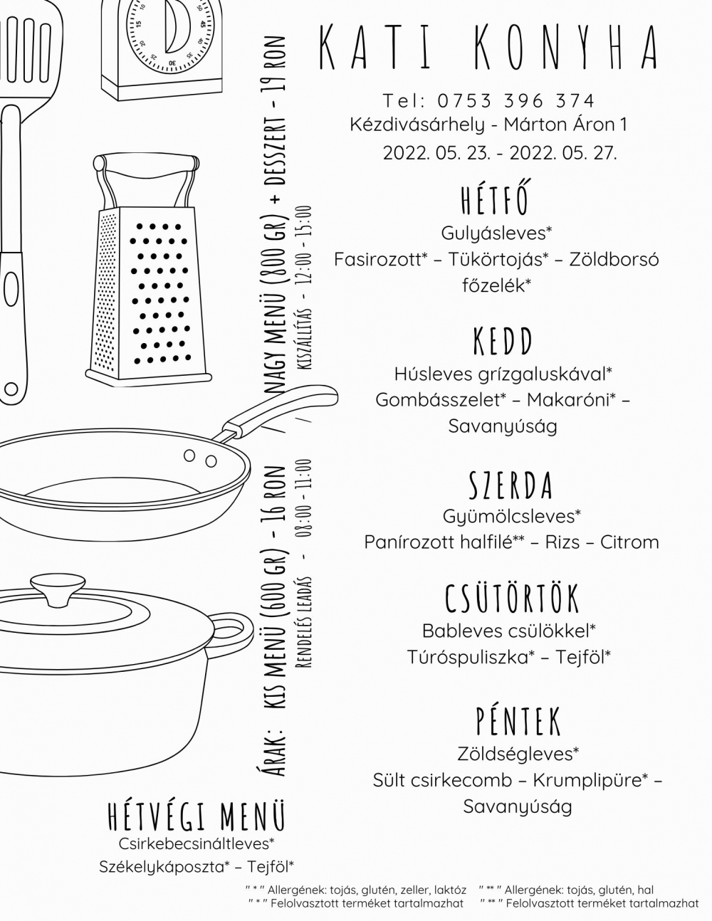 A Kati Konyha napi menü ajánlata 2022 május 23-27 között