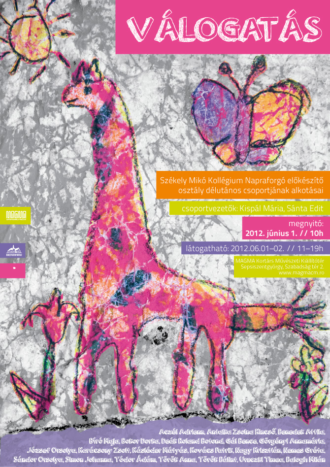 GYEREKNAP alkalmával a sepsiszentgyörgyi MAGMA Kortárs Művészeti Kiállítótér nyítja meg a Székely Mikó Kollégium Napraforgó előkészítő osztály, délutános csoportjának VÁLOGATÁS című kiállítás megnyitóját 2013. június 1-én, szombaton 10 órakor.