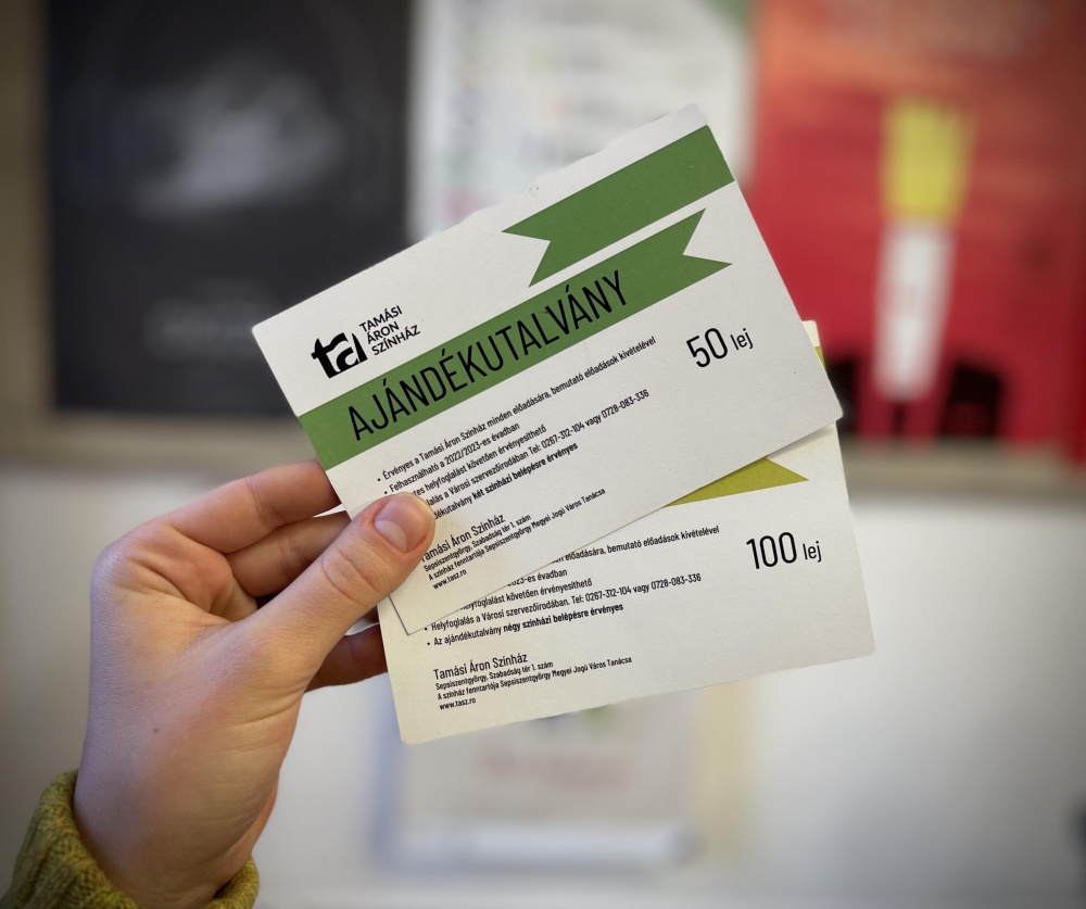 A téli ünnepek küszöbén színházi ajándékutalványokat kínál fel előadásai iránt érdeklődőknek a sepsiszentgyörgyi Tamási Áron Színház társulata. A vásárlók két típusú ajándékutalvány közül választhatnak, az egyik kétszeri, a másik négyszeri belépésre jogosít.
