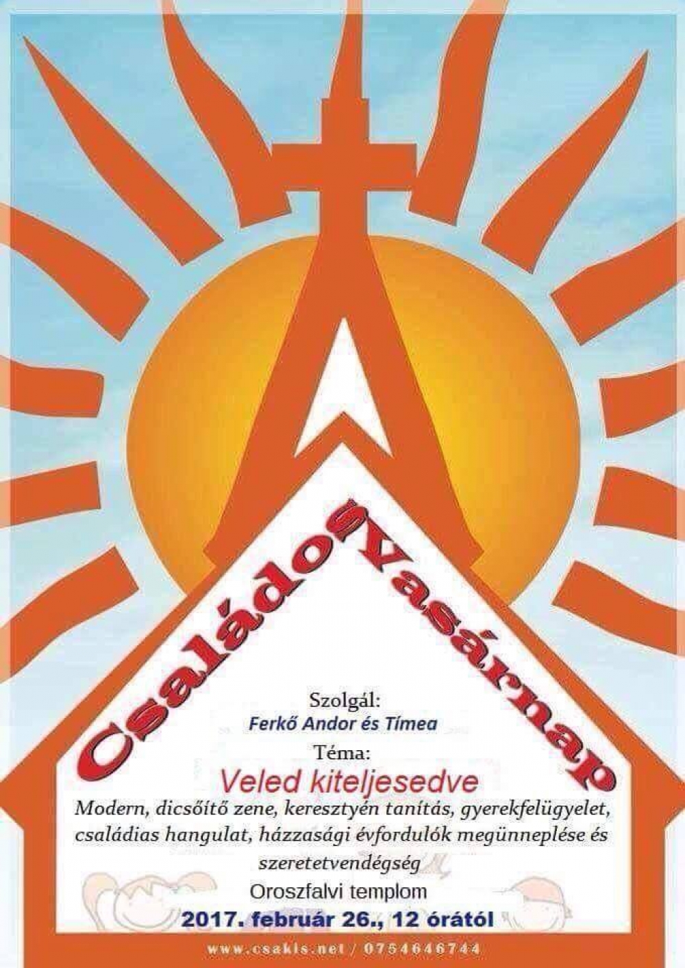 2017. február 26-én Családos Vasárnap az oroszfalvi templomban 12 órától.