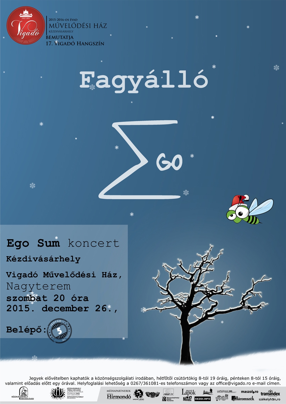 A most már évek óta megtartott, hagyományosnak számító karácsonyi műsor idén a Fagyálló címet kapta. A zenekar idén sem hazudtolja meg magát, már több hónapja készülnek a hangzásban és látványvilágban is egyedi koncertjükre. A repertoárban saját dalok, és sokak által ismert magyar és angol nyelvű, karácsonyi feldolgozások is szerepelnek, zenei finomságokkal, olykor meglepő fordulatokkal teletűzdelve. A nyolctagú zenekar mellett immár ismerős arcként szerepel Mihály Ádám állandó vendéghegedűs, akit a tavaly decemberi koncerten ismerhetett meg a közönség, és azóta is több erdélyi turnéra kísérte el a zenekart. Vendégzenészként jelen lesz Gergely Tamás, aki új színt csempész a zenekar hangzásvilágába, ő ezúttal eufóniumon játszik. A koncertet kísérő vetített animációt idén is Mágori Brigitta készítette. A jó hangulat és szórakozás idén is garantált, mindenkit szeretettel várnak!