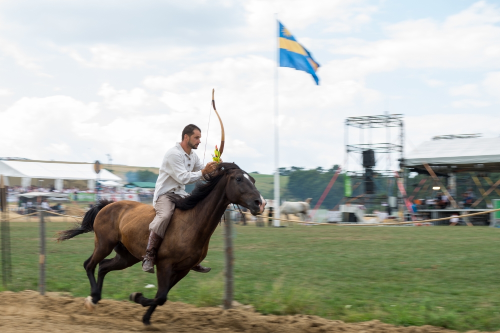 Világrekord született a Székely Vágtán. Pászka Lehel lovas íjász 34 másodperc alatt teljesítette a kitűzött célt. A világrekord-kísérletről: A lovas íjász kantár és nyereg nélküli lovon, vágtában, 40 másodperc alatt próbál megtenni egy kört a versenypályán, ahol a pálya szélén azonos távolságra, 60 cm átmérőjű, a földtől 1.5 méterre elhelyezett, szám szerint 14 céltábla helyezkedik el, amelyekre íjjal és nyíllal ad le célzott lövéseket. A gyakorlat nehézségeit több pontba is lehet szedni. Mivel a lovon nincs kantár vagy kötőfék, amivel irányítani lehetne a lovat, ezért a lovas csak a lóval való kialakított kapcsolatra alapozhat, az egyensúly és együttműködés egy pillanatra sem szakadhat meg, mert ezzel nő a balesetveszély. A lövések pontossága bizonyítja az egyensúly és az irányítás tökéletességét, ennek hiányában nincs találat. A másik nehezítő körülmény, hogy kézből történik a töltés, azaz a 14 vesszőt az íjhoz hozzáfogva tartva indul el a lovas íjász. Ezeknek a vesszőknek az alakzata legyező formában áll, ez nagy sebességnél nagy szélnyomást jelent, ami fokozza a töltés nehézségét, és annak esélyét, hogy valahányszor kivesz az íjász egy vesszőt a többit elragadja a szél. Mivel a pálya kör alakú, minél nagyobb a sebesség, annál nagyobb a centrifugális erő, ami megnöveli a kisodródás lehetőségét vagy a lovas esését a lóról. fotó: Máthé Zoltán