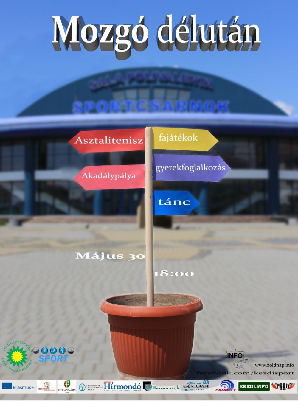 A Zöld Nap Egyesület és az Önkormányzat Sportirodája tizenharmadik alkalommal szervezi meg a Mozgó Délutánt május 30-án, (hétfő) 18-20. óra között a kézdivásárhelyi Sportcsarnokban.