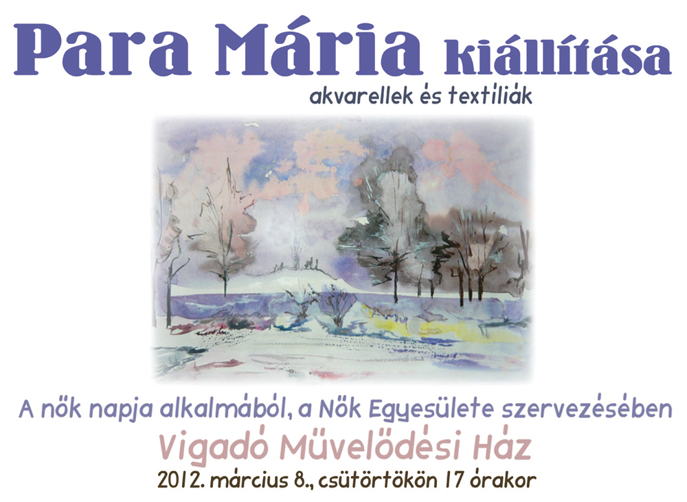 2012. március 8., csütörtökön 17 órakor a Vigadóban Para Mária kiállítása.