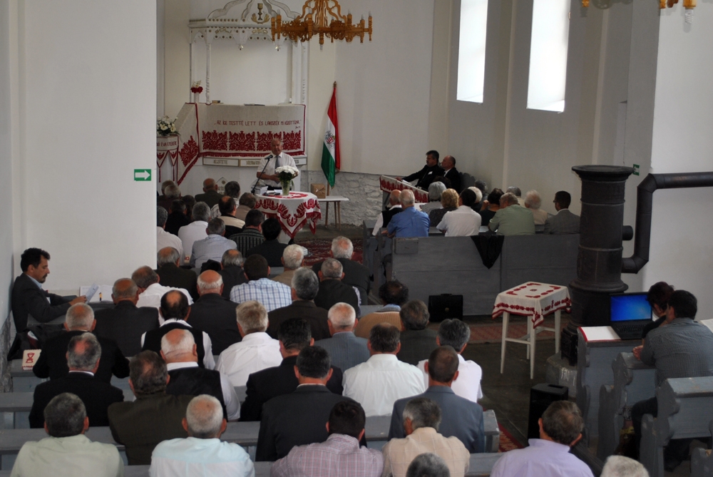 Lőrincz István marosvásárhelyi lelkipásztor „Az Istenfélő presbiter” előadását hallgatták meg a jelenlevők, aki az istenfélelemről, a látható és láthatatlan egyházról, a presbiteri tisztség fontosságáról,az anyagiak kezeléséről,a tanítványságról,az imádkozásról, az emberi kapcsolatok minőségének egyházépítő hozadékáról beszélt. Miért van szükség tisztségekre, ha Isten mindenkit elhívott? Mert az egyház szervezetként is jelen van a világban, így szükség van vezetőkre, akik Isten és emberek előtt felelősséggel tartoznak. A tisztség fontosabb, mint a személy. Nem mindegy, hogy ki hordozza a tisztséget. Fontos a személyhez való viszonyulás, az emberi kapcsolatok. Lényeges a példamutatás, életvitel. Ennek a mércéje legyen a szentírási üzenet: „Ami hitből nincs, az bűn.” Fontos a természetesség. Két veszély leselkedik az egyházi tisztségviselőkre: a „túl világias” és a „túlvilági”életmód, életvitel. „ Ma az embereket nem tekintéllyel, sem fenyegetéssel kell behozni az egyházba, csak szeretettel.”- hangzott el.