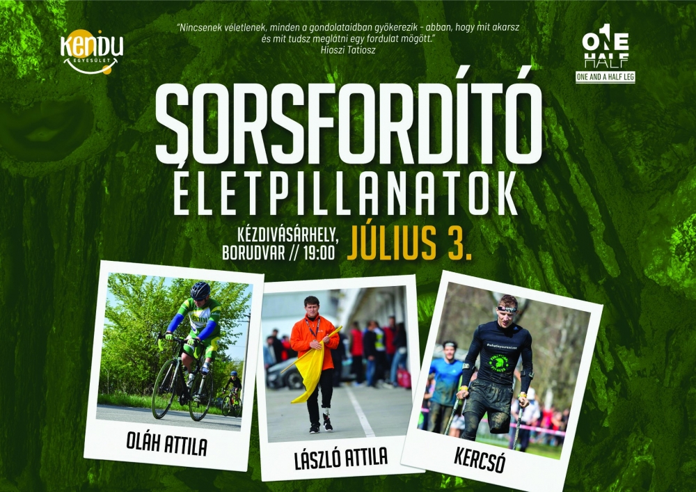 Július 3-án a Kendu Egyesület partnerségben a One and a half leg egyesülettel, motivációs előadást szervez!